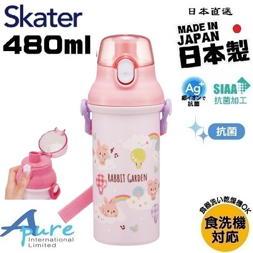 Skater-兔子花園銀離子AG+抗菌兒童水壺/便攜式背帶水樽480ml(日本直送&日本製造)